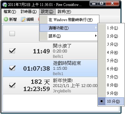 貪睡功能可設定:1~10分鐘。(如下圖)