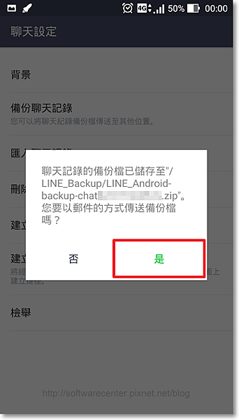 提示將聊天紀錄備份檔(壓縮檔)儲存的位置,
