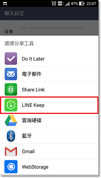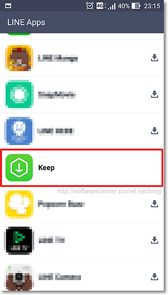 請至LINE其他→LINE Apps→keep。(如下圖紅框)