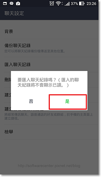請按【是】匯入聊天紀錄。(注意!匯入紀錄的部分不會顯示已讀)