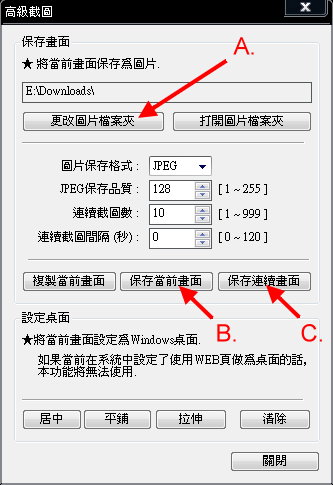 A.更改圖片檔案夾:截取下來時要存放圖片的地方